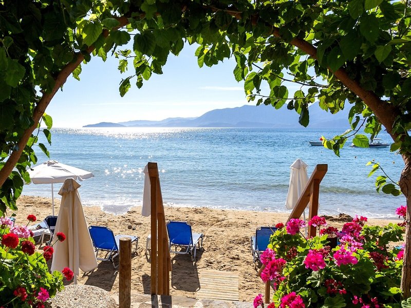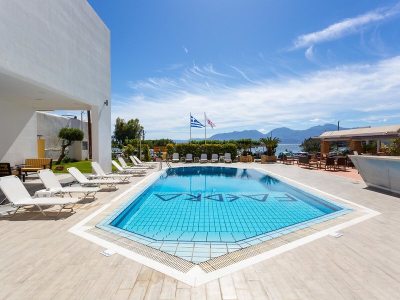 Lage & Umgebung Das Hotel liegt an dem ruhigen Sandstrand Ammoudara, der mit der Blauen Flagge ausgezeichnet wurde. Nach Agios Nikolaos sind es etwa 3 km, es ist einer der schönsten und malerischsten Orte auf Kreta.