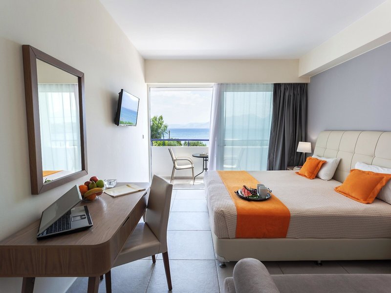 Vaše ubytovanie: Klimatizácia a kúrenie zabezpečujú príjemnú teplotu v izbe. Hostia si môžu oddýchnuť na balkóne alebo súkromnej terase väčšiny izieb a vychutnať si výhľad na more. Izby sú vybavené manželskou posteľou, manželskou posteľou alebo posteľou veľkosti king. Prístelky sú k dispozícii na požiadanie. Trezor zabezpečuje bezpečnosť vecí hostí. Kuchynka je vybavená mini chladničkou. K dispozícii je aj telefón s priamou voľbou, TV, rádio a Wi-Fi pripojenie. Kúpeľňa so sprchovacím kútom a vaňou je vybavená sušičom vlasov a telefónom. Pre rodiny s deťmi sú k dispozícii rodinné izby.
