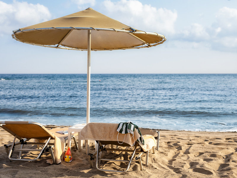 - Strand: Sand, flach abfallend, Liegen, Sonnenschirme