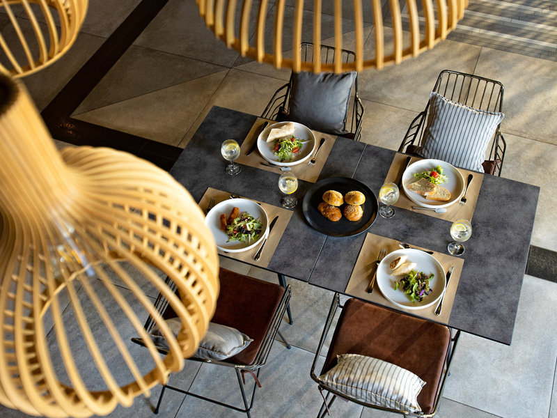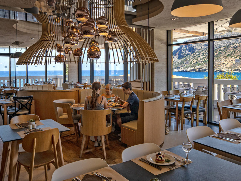 - Hlavná reštaurácia Basilikos: Kuchyňa: Ázijská, Grécka, Medzinárodná, Stredomorská, Detská strava: zadarmo, na vyžiadanie, rezervácia nie je potrebná, Bezlepkové jedlá: zadarmo, na vyžiadanie, rezervácia nie je potrebná, Detský bufet: zadarmo, na vyžiadanie a rezervácia nie je potrebná, Bezlaktózové jedlá: zadarmo, na vyžiadanie a rezervácia nie je potrebná, Vegetariánske jedlá: zadarmo, na vyžiadanie a rezervácia nie je potrebná, Vegánske jedlá: zadarmo, na vyžiadanie a rezervácia nie je potrebná, Bufet, Show cooking, zadarmo, denne 7:15 - 11:00, 12:30 - 14:30 a 18:30 - 21:30, klimatizované, s terasou, detská stolička, vhodné oblečenie je potrebné.
