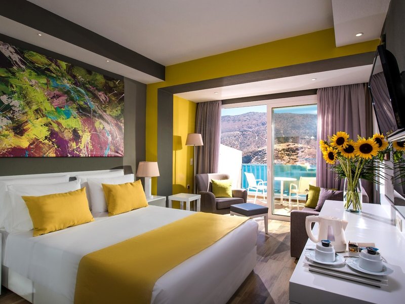 - Sun Room Side Sea View (DZX1), Doppelzimmer, Nichtraucherzimmer, seitlicher Meerblick, ca. 25 - 26 m², letzte Komplettrenovierung 2016, Gesamtanzahl der Räume in diesem Zimmertyp: 1, Aufteilung wie folgt: 1 Schlafzimmer, 1 Doppelbett, Babybett: ohne Gebühr, Anfrage nicht notwendig, Klimaanlage: ohne Gebühr, individuell regelbar, kalt, warm, Fußboden: Fliesenboden, Safe: ohne Gebühr, Sofa, Kühlschrank, Kaffee-/Teezubereiter, Wasserkocher, Telefon, Internet: WLAN/WiFi: ohne Gebühr, Fernseher: Flatscreen, deutsches Programm, Sat-TV, Reinigungsservice: täglich, Dusche, separates WC, Föhn, Kosmetikspiegel, Balkon: mit Sitzgelegenheit