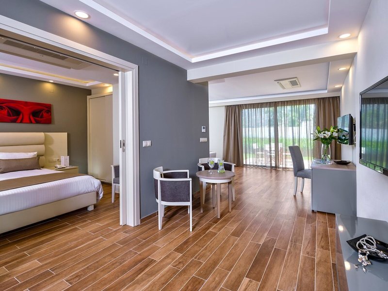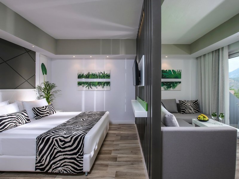 - Sunset Room Juniorsuite (FZX5), Familienzimmer, Nichtraucherzimmer, Landseite, Gartenblick, ca. 34 m², letzte Komplettrenovierung 2017, Gesamtanzahl der Räume in diesem Zimmertyp: 2, Aufteilung wie folgt: kombiniertes Wohn-/Schlafzimmer, 1 Schlafzimmer, 1 Doppelbett, Babybett: ohne Gebühr, Anfrage nicht notwendig, Moskitonetz, Klimaanlage: ohne Gebühr, individuell regelbar, kalt, warm, Heizung: individuell regelbar, Fußboden: Fliesenboden, Safe: ohne Gebühr, Sofa, Schreibtisch, Kaffee-/Teezubereiter, Telefon, Internet: WLAN/WiFi: ohne Gebühr, Fernseher: Flatscreen, im Wohnbereich, im Schlafzimmer, deutsches Programm, Kabel-TV, Reinigungsservice: täglich, ohne Gebühr, Dusche, separates WC, Föhn, Kosmetikspiegel, Balkon oder Terrasse