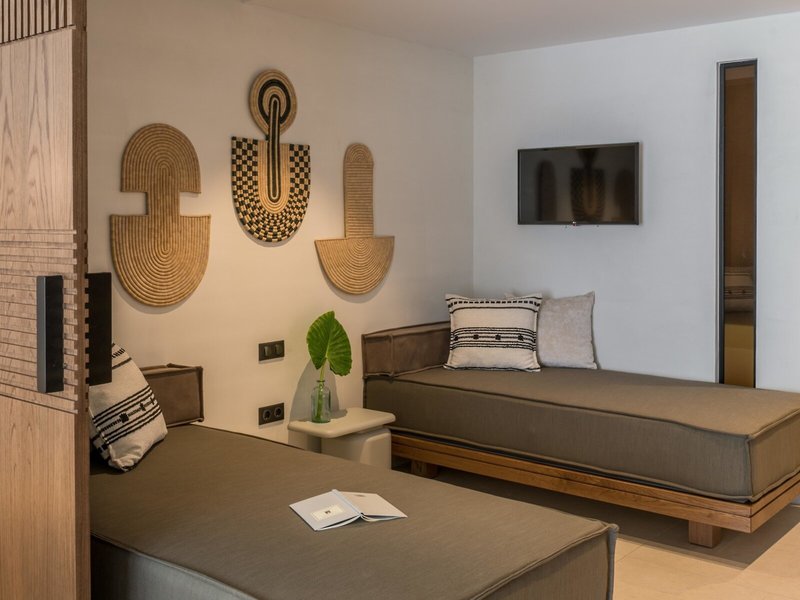 - Seafront room capacity 4 (DZX2), Doppelzimmer, Nichtraucherzimmer, Meerblick, ca. 32 - 36 m², Gesamtanzahl der Räume in diesem Zimmertyp: 2, Aufteilung wie folgt: bestehend aus 2 Zimmern, optisch getrennt durch Schiebetür, 2 Einzelbetten, 1 Doppelbett, Babybett: ohne Gebühr, Anfrage notwendig, Moskitonetz, Klimaanlage: ohne Gebühr, individuell regelbar, kalt, warm, Fußboden: Fliesenboden, Safe: ohne Gebühr, Sofa, Kühlschrank, Kaffee-/Teezubereiter, Wasserkocher, Minibar: Softdrinks, Wasser, Minibarauffüllung: täglich, Telefon, Internet: WLAN/WiFi: ohne Gebühr, Fernseher: Flatscreen, deutsches Programm, Sat-TV, Dusche, WC, separates WC, Bademantel: ohne Gebühr, Slipper: ohne Gebühr, Föhn, Kosmetikspiegel, Balkon oder Terrasse: mit Sitzgelegenheit