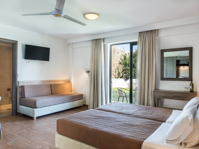 - Štúdio typ 1 (STX1), štúdio, strana bazéna, strana záhrady, výhľad na more, výhľad do záhrady, cca 30 m², celkový počet izieb v tomto type izby: 1, rozloženie: kombinovaná obývacia izba/spálňa, 3 samostatné postele ( 90x180cm), klimatizácia: individuálne nastaviteľná, studená, teplá, podlaha: dlažba, laminát, stropný ventilátor, sedenie, pohovka, písací stôl, kuchynský kút, chladnička, varná doska, rýchlovarná kanvica, hriankovač, jedálenský stôl, TV: plochá obrazovka, v obývací priestor, upratovacia služba, vaňa alebo sprcha, balkón: s posedením, balkón alebo terasa: s posedením, terasa: s posedením, s priamym vstupom do bazéna