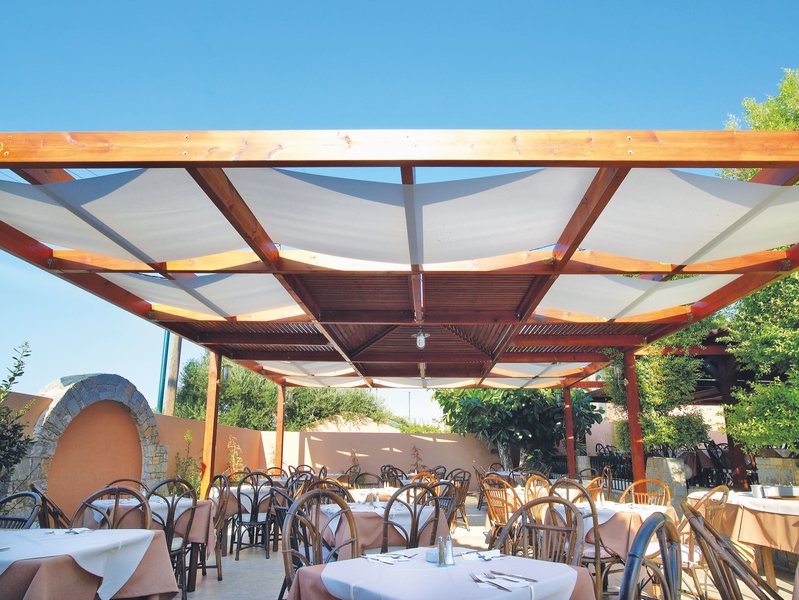 All Inclusive: Frühstück (7:30-10 Uhr), Mittag- (12:30-14:30 Uhr) und Abendessen (18:30-21:30 Uhr) in Buffetform, tagsüber Snacks (11-12:30 Uhr), Eiscreme nur für Kinder (12-15:30 Uhr) sowie Kaffee/Tee und Gebäck (16-17 Uhr). Zu den Mahlzeiten sind Softdrinks, Bier und Tischwein inklusive. An der jeweils geöffneten Bar sind von 11-23 Uhr lokale alkoholfreie Getränke sowie ausgewählte lokale alkoholische Getränke (Bier, Wein, Ouzo, Brandy und Raki) inklusive. Von 18-23 Uhr sind zusätzlich lokaler Vodka, Gin, Whiskey, Rum und Tequila inklusive. Außerdem ist von 21-22 Uhr der Cocktail des Tages inklusive.