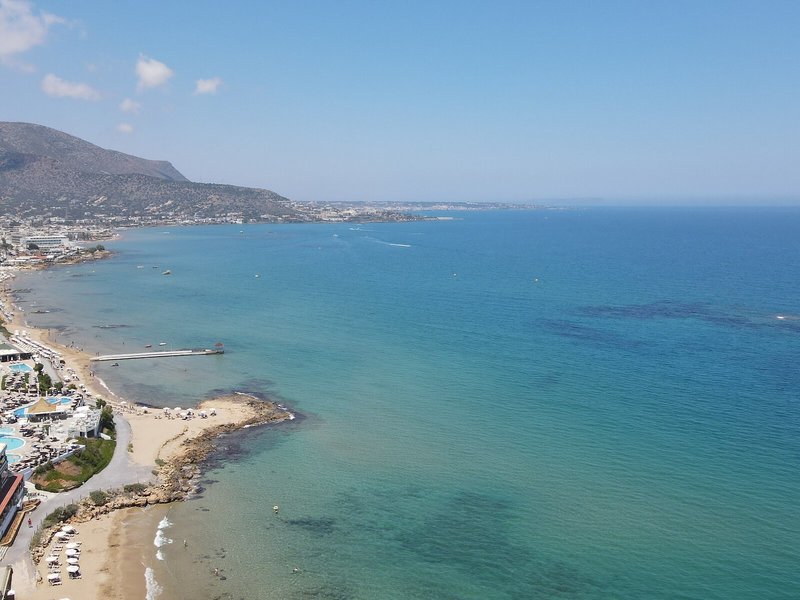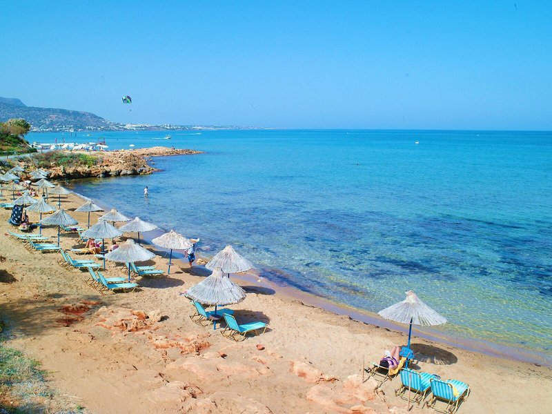 Lage & Umgebung Dieser Bungalowkomplex, ideal für Strandurlauber, Sport- und Aktivurlauber, Singles und Naturliebhaber, liegt in Mália, nur wenige Augenblicke vom Meer entfernt, in ruhiger Lage.