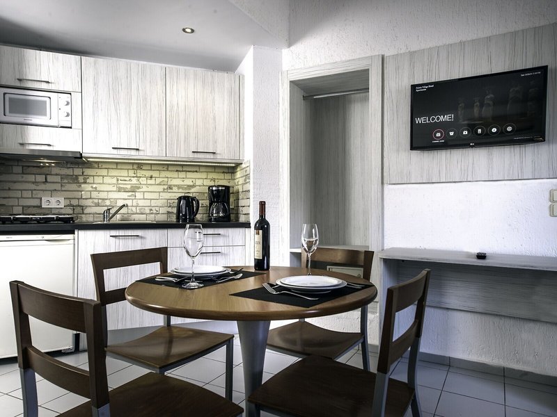 So wohnen Sie: Für angenehmes Raumklima in den Zimmern sorgen eine Klimaanlage und eine Heizung. Die Gäste können den Bergblick von Balkon oder Terrasse genießen. Die Zimmer verfügen über ein Doppelbett, ein Queensize-Bett oder ein Sofabett. Zustellbetten können angefordert werden. Außerdem sind ein Safe und eine Minibar verfügbar. In der Kochnische befinden sich ein Kühlschrank, eine Mikrowelle und eine Tee-/Kaffeemaschine. Eine Hosenpresse ist für den zusätzlichen Komfort der Gäste verfügbar. Darüber hinaus sind ein Telefon, Sat-TV und WiFi vorhanden. Zu den Vorzügen der Zimmer gehören Hausschuhe. Im Badezimmer, ausgestattet mit einer Dusche und einer Badewanne, sind ein Haartrockner und Bademäntel vorhanden. Das Hotel bietet Familien- und Raucherzimmer.