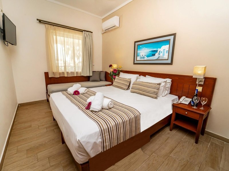 - Double standard (DZX1), Doppelzimmer, im Hauptgebäude, im Nebengebäude, Poolblick, Gartenblick, ca. 25 m², letzte Teilrenovierung 2020, Gesamtanzahl der Räume in diesem Zimmertyp: 20, 3 Einzelbetten, Babybett: ohne Gebühr, Klimaanlage: Barzahlung, pro Tag ca. 7 EUR, Mai und Oktober, individuell regelbar, Fußboden: Fliesenboden, Safe: Barzahlung, pro Tag ca. 3 EUR, Kühlschrank, Kaffee-/Teezubereiter, Wasserkocher, Telefon, Internet: WLAN/WiFi, Fernseher: Flatscreen, im Schlafzimmer, deutsches Programm, Sat-TV, Dusche, Föhn, Balkon: mit Sitzgelegenheit, Balkon oder Terrasse: mit Sitzgelegenheit