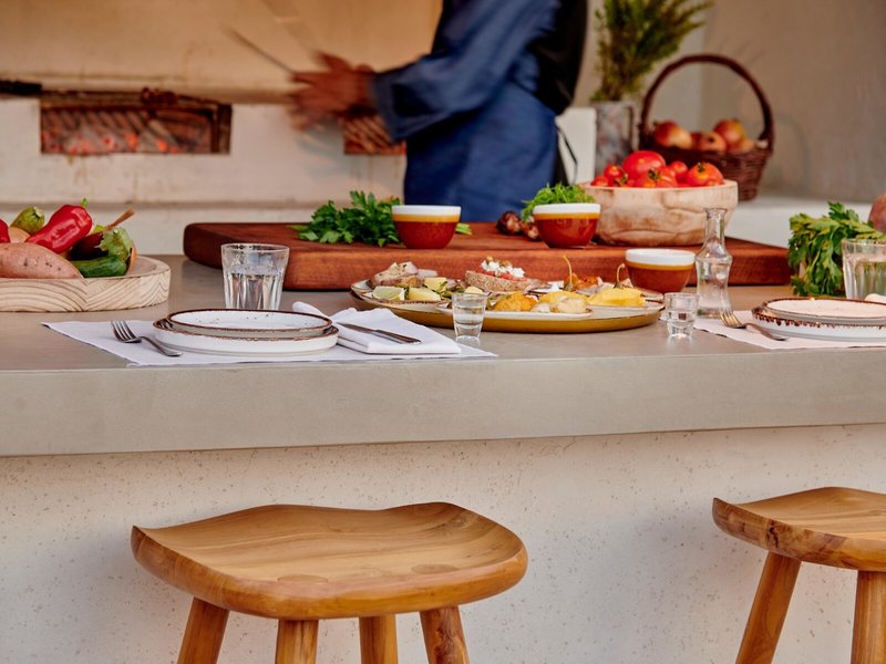- Reštaurácia Elia: Kuchyňa: grécka, stredomorská, biopotraviny, bezlepkové jedlá, detské menu, bezlaktózové jedlá, ľahké jedlá, vegetariánske jedlá, vegánske jedlá, à la carte, rezervácia nutná, za príplatok, zahrnuté v cene all inclusive, máj - október, 19:00 - 22:00, klimatizovaná, s terasou, k dispozícii je detská stolička, elegantný dress code