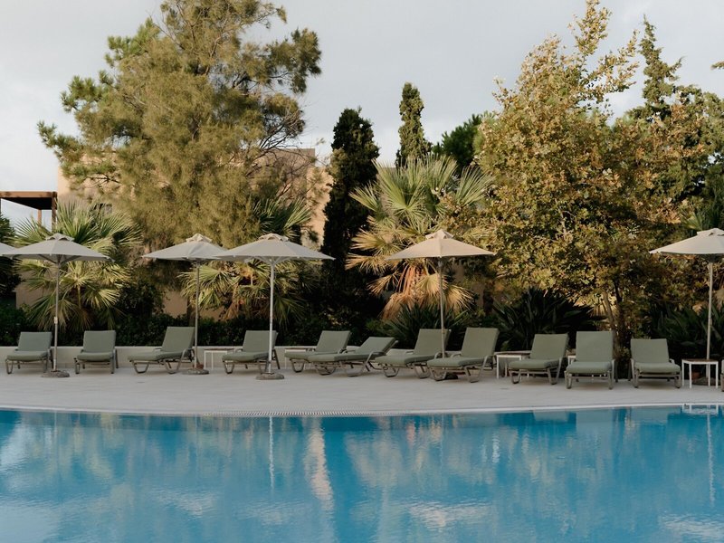 Poloha a okolie Hotel je obklopený bujnou zeleňou a zasadený do divoko romantickej horskej krajiny a je ideálnym východiskovým bodom pre outdoorové aktivity a zážitky z prírody. Obľúbená je turistika, jazda na horskom bicykli, hodiny jogy a golf. Nádherné stredomorské pobrežie severnej Kréty s plážami a zálivmi je vzdialené asi 7 km.