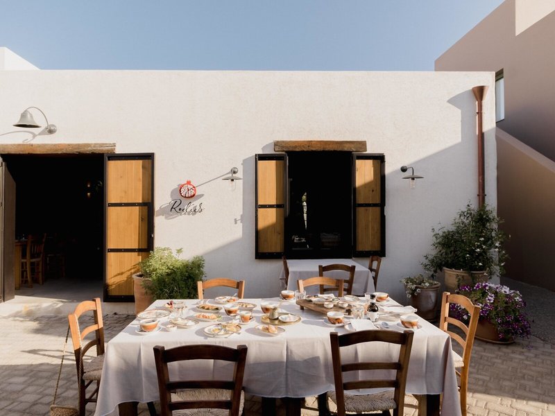 - Reštaurácia Rodies: Kuchyňa: grécka, miestna, regionálna, biopotraviny, bezlepkové jedlá, bezlaktózové jedlá, ľahké jedlá, sezónne jedlá, vegetariánske jedlá, à la carte, show cooking, rezervácia nutná, za príplatok, zahrnuté v cene All Inclusive, sezónne, denne 8:00 - 11:00 a 19:00 - 22:00, klimatizovaná, s terasou, pri bazéne, k dispozícii detská stolička, elegantný neformálny dress code