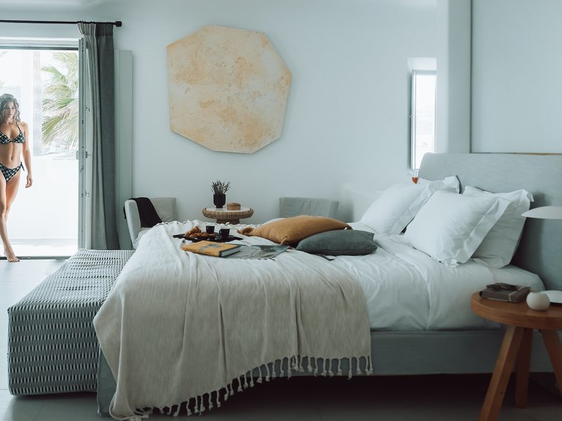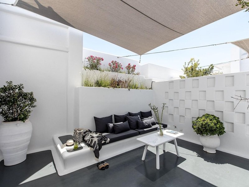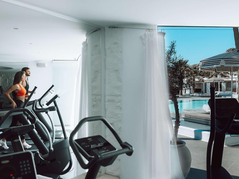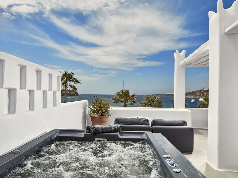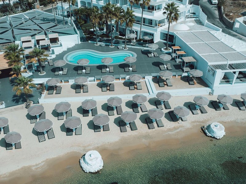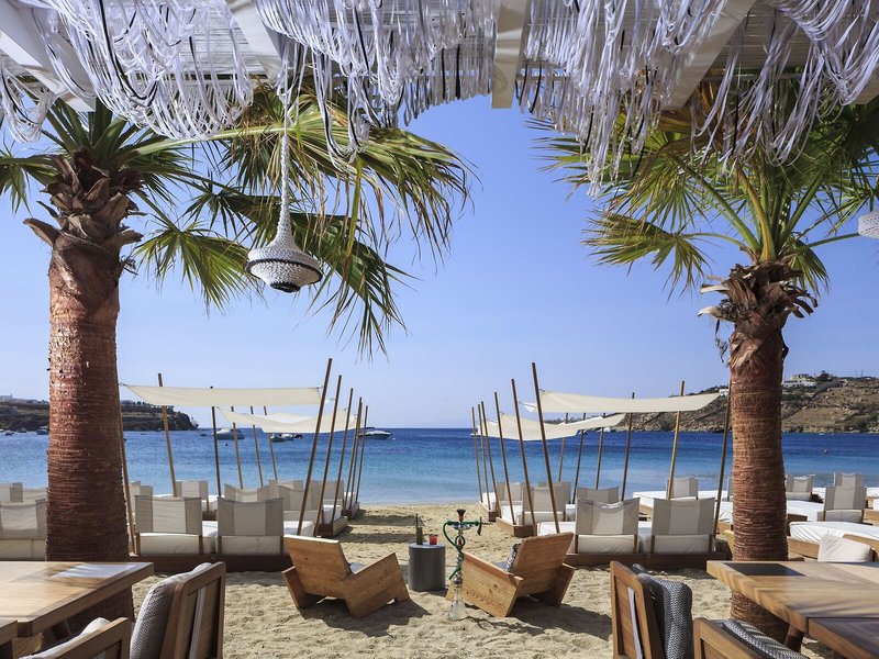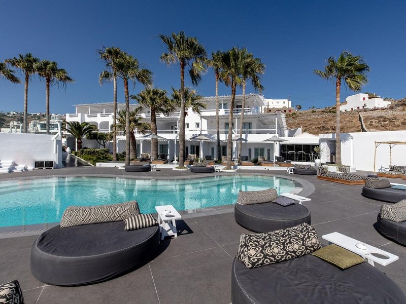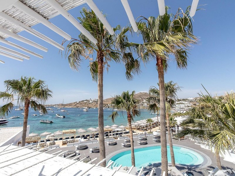 Lage & Umgebung Das Hotel erfreut sich bester Lage direkt am Sandstrand in Ornos Bay, nahe einiger Restaurants und Bars. Bushaltestellen sind schnell erreicht, von hier gelangen die Gäste bequem ins touristische Zentrum der ca. 3 km entfernten Stadt Mykonos. Der Flughafen Mykonos ist ungefähr 2 km entfernt.