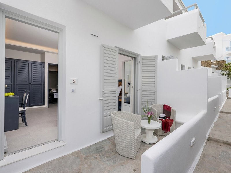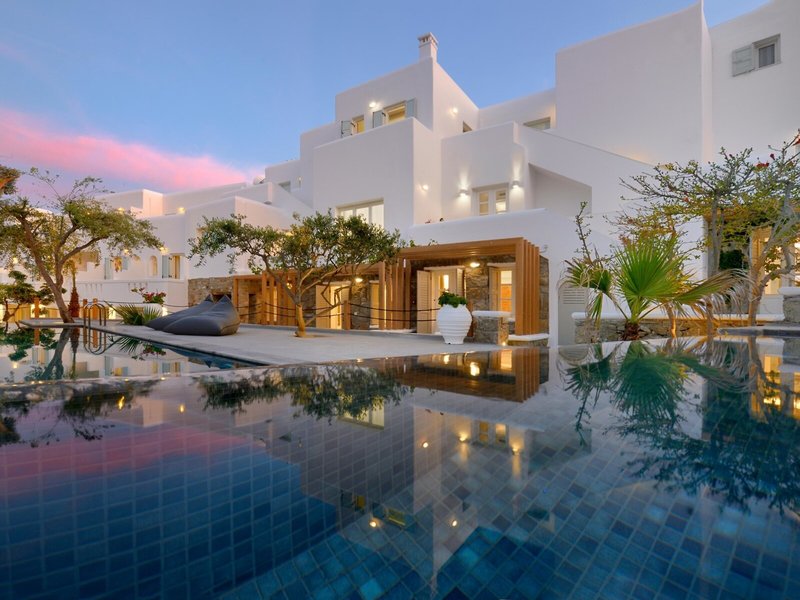 Poloha a okolie Centrálne umiestnený v Platy Yialos, neďaleko krásnej a obľúbenej piesočnatej pláže. Pozdĺž pláže je niekoľko taverien/reštaurácií a plážových barov. Lehátka a slnečníky sú k dispozícii za poplatok. Mesto Mykonos s množstvom možností zábavy je vzdialené asi 3,5 km a je ľahko dostupné autobusom; autobusová zastávka je pred hotelom. Z Platy Yialos premávajú lode na obľúbené pláže ako Paradise a Super-Paradise.