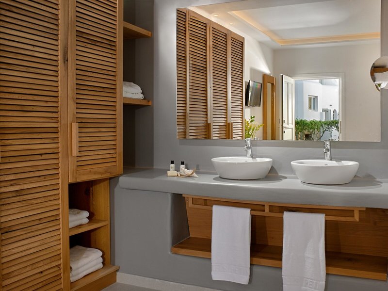 Lage & Umgebung Zentral in Platy Yialos, unweit des schönen und beliebten Sandstrandes. Entlang des Strandes gibt es einige Tavernen/Restaurants und Strandbars. Liegen und Sonnenschirme erhalten Sie gegen Gebühr. Mykonos-Stadt mit zahlreichen Unterhaltungsmöglichkeiten ist ca. 3,5 km entfernt und gut mit dem Linienbus zu erreichen, die Haltestelle befindet sich vor dem Hotel. Von Platy Yialos fahren Boote zu den angesagten Stränden, wie Paradise, Super-Paradise.