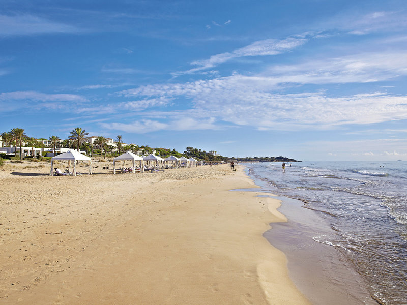 • Vlastná hotelová pláž: piesok, jemný piesok, mierne sa zvažujúca, dĺžka pláže: cca 2000 m, súkromná, hotelová, ležadlá: bez poplatku, slnečníky: bez poplatku