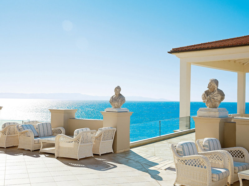 • Luxury guest room sea view (DZM2), Doppelzimmer, im Hauptgebäude, Meerblick, ca. 30 m², Gesamtanzahl der Räume in diesem Zimmertyp: 1, Aufteilung wie folgt: 1 Schlafzimmer, 1 Zustellbett (80x190cm), Babybett: ohne Gebühr, Anfrage notwendig, Klimaanlage: ohne Gebühr, individuell regelbar, zentral gesteuert, kalt, Fußboden: Fliesenboden, Safe: ohne Gebühr, Sitzecke, Kühlschrank: ohne Gebühr, Kaffee-/Teezubereiter, Telefon, Internet: WLAN/WiFi: ohne Gebühr, Fernseher: Flatscreen, deutsches Programm, Sat-TV, Roomservice: 07:00 Uhr - 01:00 Uhr, täglich, gegen Gebühr, Reinigungsservice: ohne Gebühr, Badewanne, WC, Bademantel: ohne Gebühr, Slipper: ohne Gebühr, Föhn, Balkon oder Terrasse: mit Sitzgelegenheit
