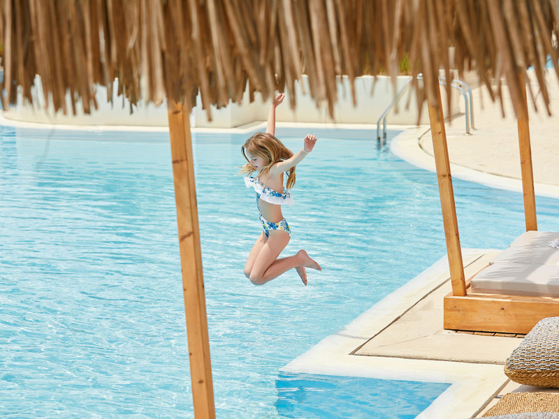• Mitbenutzung von Pools, Wasserrutschen und Strand des Grecotel Olympia Oasis & Aqua Park inbegriffen (Bars, Restaurants etc. gegen Gebühr).