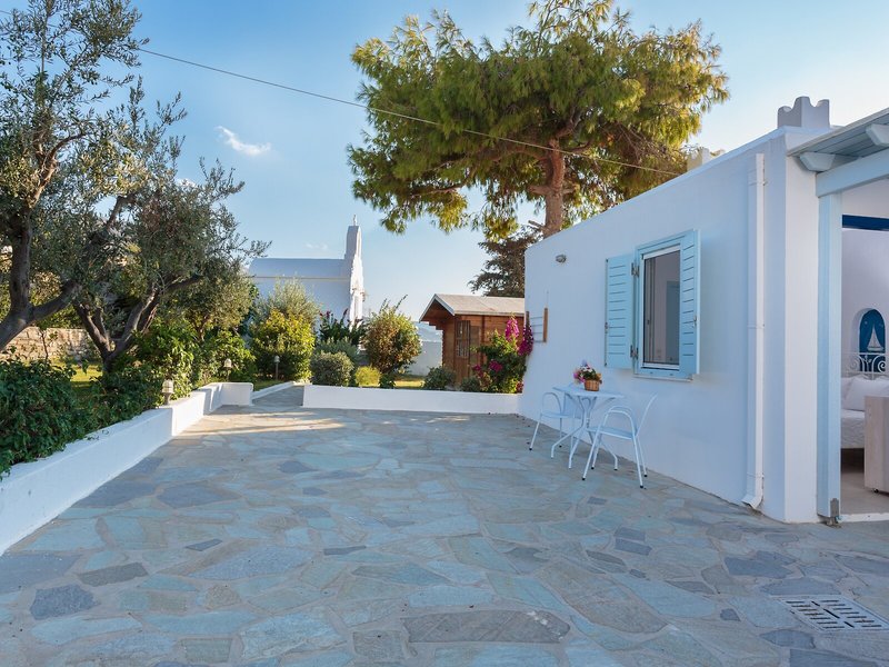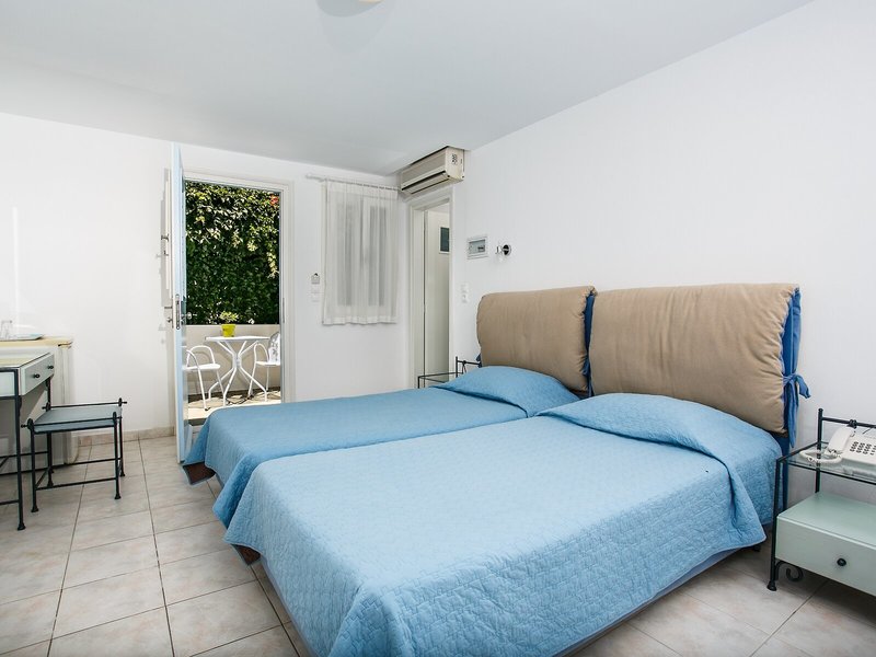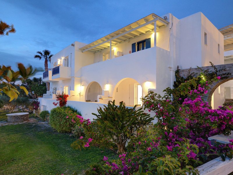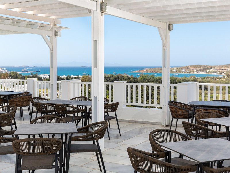 Lage & Umgebung Dieses Hotel mit Blick auf den Hafen von Parikia liegt nur etwa 600 m vom Strand von Livadia entfernt. Nach Parikia sind es ca. 1,5 km, der Flughafen liegt in rund 9 km Entfernung.