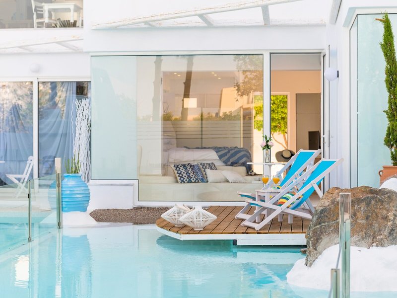 - Suite with private pool (SUX2), Nichtraucherzimmer, Mindestalter im Zimmer: 18 Jahre, im Hauptgebäude, Poolblick, ca. 30 m², letzte Teilrenovierung 2020, Gesamtanzahl der Räume in diesem Zimmertyp: 1, 1 Doppelbett, Klimaanlage: ohne Gebühr, individuell regelbar, Heizung: individuell regelbar, Fußboden: Fliesenboden, Safe: ohne Gebühr, Kühlschrank: ohne Gebühr, Internet: WLAN/WiFi: ohne Gebühr, Fernseher: Flatscreen, Dusche, Terrasse: mit Private Pool
