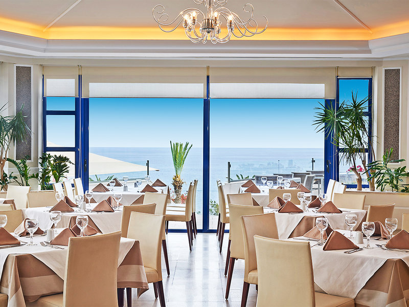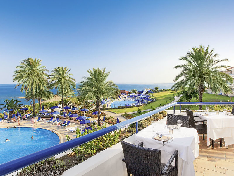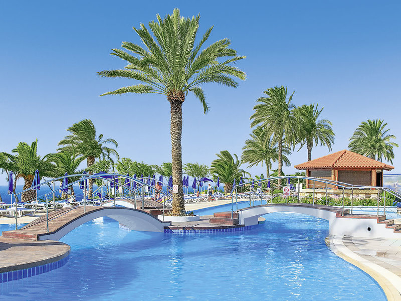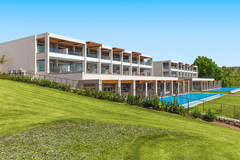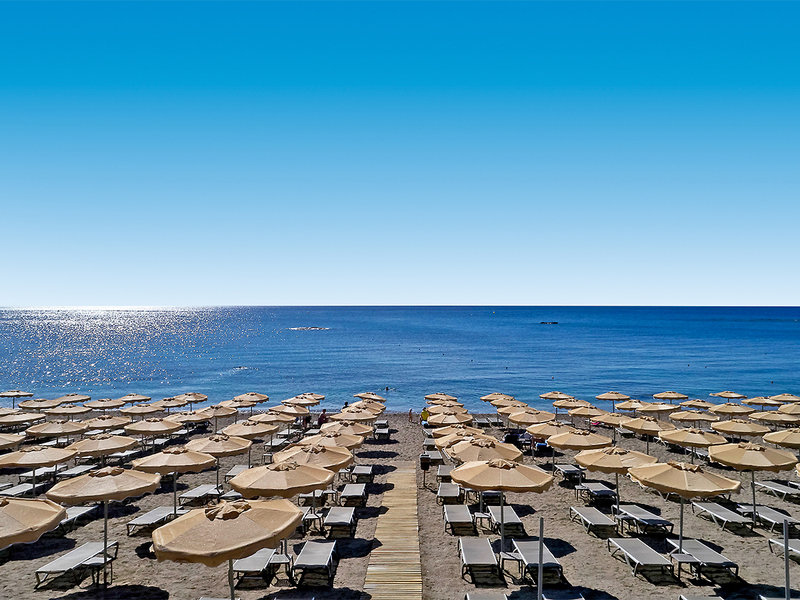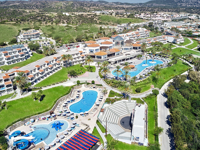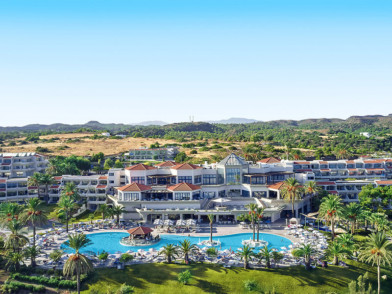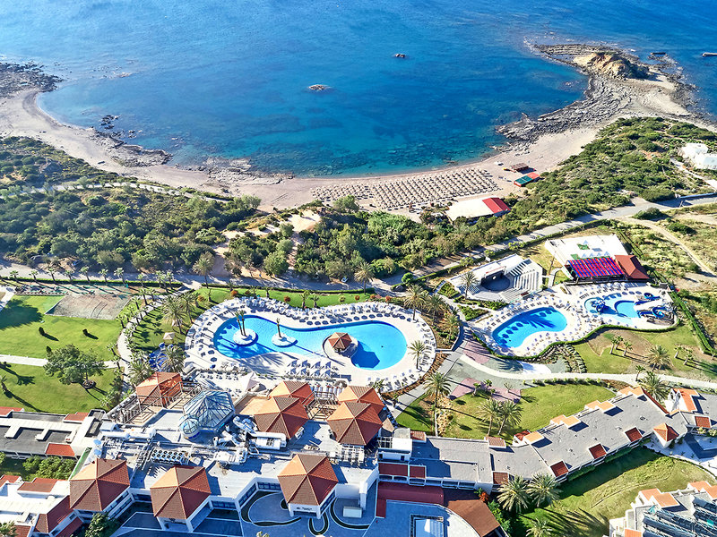 Ausstattung: Modern und großzügig angelegtes Ferienresort mit weitläufigem Garten. Swimmingpoollandschaft, Rutschen. Sonnenterrassen, Liegen, Schirme und Badetücher am Pool und Strand, Poolrestaurant, Poolbar. Empfangsbereich, Rezeption, WLAN, Einkaufspassage, Restaurant, Strandrestaurant "Diogenis" (abends BBQ-Restaurant). Themenrestaurants "Venus" (griech., Burger) und "Hanami" (asiat., Getränke jew. geg. Geb.), Lobbybar, Eisdiele. Landeskat.: 4 Sterne, 421 Zimmer.