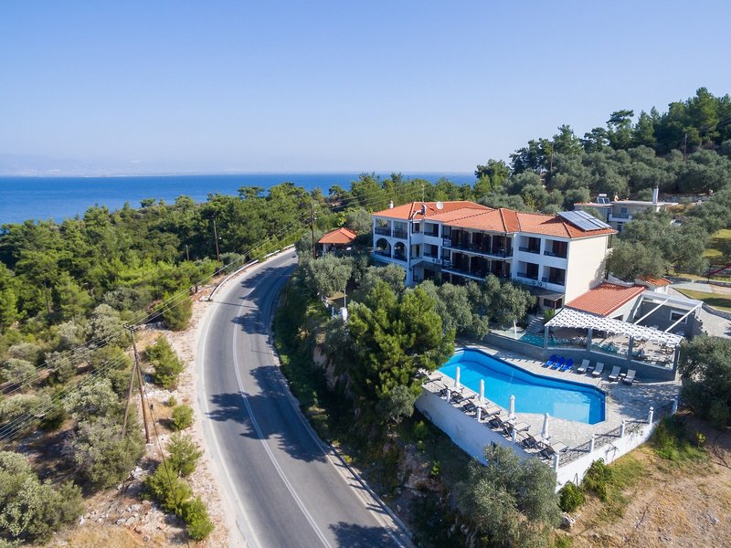 Lage & Umgebung Das Hotel liegt zwischen Olivenhainen an der Nordküste der Thassos-Insel und blickt auf die nördliche Ägäis. Nur ca. 200 m entfernt befindet sich der Golf von Glifoneri, der mit wunderbarer Natur, mit Pinien an der Küste bezaubert. Den erschlossenen Strand Pachis erreicht man nach nur ca. 300 m. In der Umgebung befinden sich zahlreiche Restaurants, nach rund 15 Gehminuten sind Bars und Einkaufsmöglichkeiten erreicht. Der Flughafen Kavala ist ungefähr 20 km weit weg.