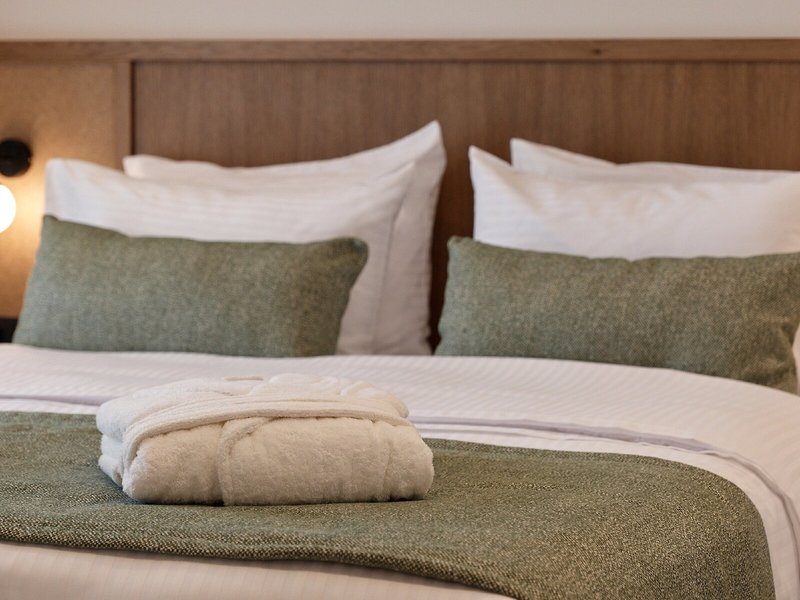 Takto sa ubytujete: Klimatizácia a kúrenie zabezpečujú príjemnú vnútornú klímu v izbách. Balkón je štandardom vo väčšine izieb. Izby majú manželskú posteľ a rozkladaciu pohovku. K dispozícii sú samostatné spálne. K dispozícii je aj trezor a minibar. Kuchynka je vybavená chladničkou, minichladničkou a príslušenstvom na prípravu čaju/kávy. Pre väčšie pohodlie hostí je k dispozícii súprava na žehlenie. K dispozícii je aj telefón, satelitná TV, rádio a WiFi. K vybaveniu izieb patria papuče. V kúpeľni so sprchovacím kútom a vírivkou sú hosťom k dispozícii sušič vlasov a župany. Pre rodičov s deťmi sú k dispozícii rodinné izby.