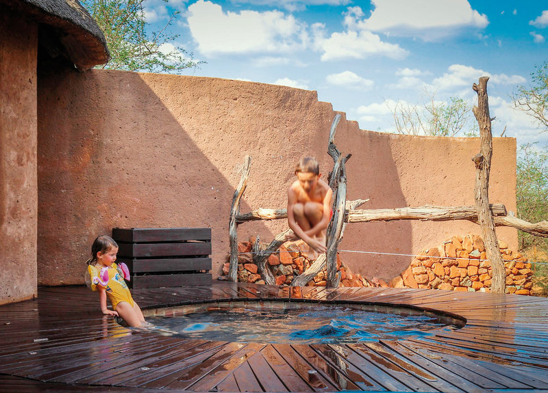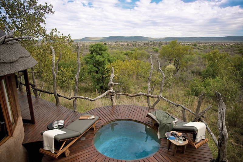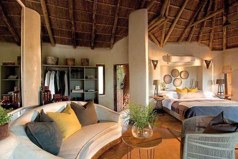 Lelapa Lodge Suite (12) ca. 50 qm WB2: Doppelbett, Bad mit Innen- und Außendusche, Föhn, Safe, Minibar, Kamin, Klimaanlage, Terrasse (ca. 50 qm) mit Plunge Pool, davon 4 speziell für Familien mit zusätzlichem Schlafzimmer mit Stockbetten.