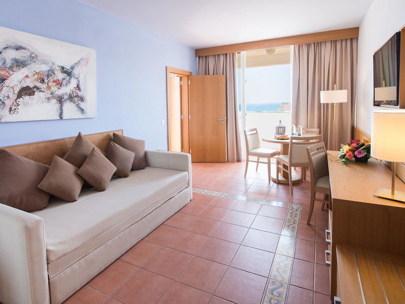 So wohnen Sie: In den Zimmern gibt es eine Klimaanlage. Auf dem Balkon oder der privaten Terrasse der meisten Zimmer können die Gäste entspannen und den Blick auf das Meer genießen. Die Zimmer verfügen über ein Doppelbett, ein Queensize-Bett, ein Kingsize-Bett oder ein Sofabett. Zustell- oder Kinderbetten können auf Wunsch angefordert werden. Außerdem sind ein Safe und ein Schreibtisch verfügbar. Auch ein Minikühlschrank und eine Tee-/Kaffeemaschine sind vorhanden. Darüber hinaus sind ein Telefon mit Direktwahl, ein Flachbildschirmfernseher und WiFi (gegen Gebühr) vorhanden. Im Badezimmer, mit einer Dusche und einer Badewanne ausgestattet, stehen für die Gäste ein Haartrockner und ein Kosmetikspiegel bereit. Für besonderen Komfort in den Badezimmern sorgen Kosmetikartikel. Außerdem sind rollstuhlgerechte Zimmer mit barrierefreiem Badezimmer buchbar. Für Eltern mit Kindern stehen 9 Familienzimmer zur Verfügung.