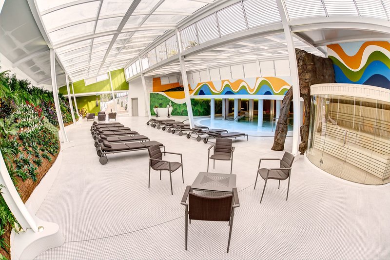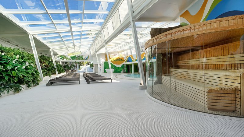 Wellness: Wellnessbereich (gratis) mit Indoorbecken mit Massagedüsen, Entspannungsbereich, Erlebnisdusche, Sauna, Dampfbad, Kaltbecken und Salzwasserbecken.