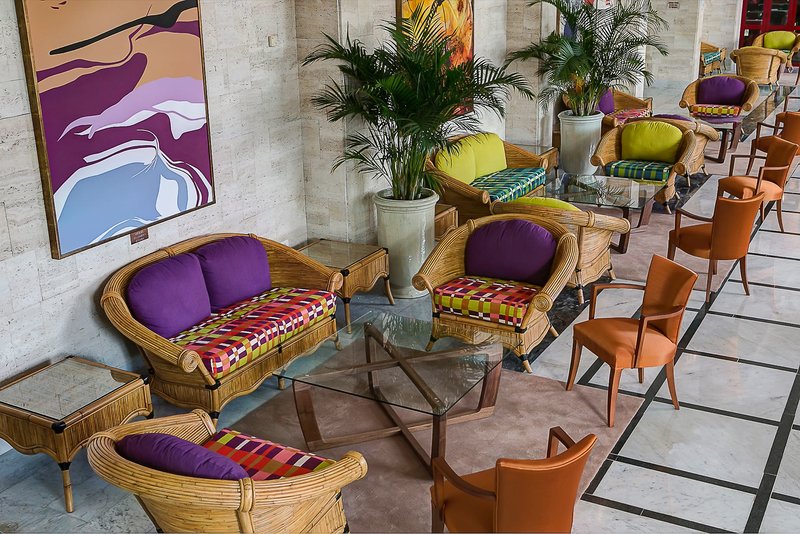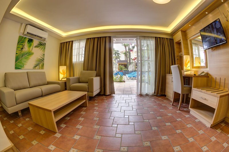 Vybavenie: Tento známy hotel len pre dospelých (rezervácie možné od 16 rokov) s 245 izbami rozmiestnenými na 7 poschodiach ponúka vstupnú halu s recepciou, výťahy, bar/salónik s terasou, knižnicu, internetový kútik, bezplatné Wi-Fi pripojenie v celom objekte a reštauráciu s veľkou terasou. Hotel sa môže pochváliť aj dobre udržiavanou, priestrannou záhradou so sviežimi palmami a dvoma bazénmi (jeden je v zime vyhrievaný).