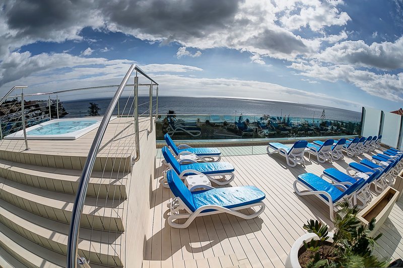 Auf dem Dach befindet sich eine Sonnenterrasse mit Liegen und Whirlpool sowie eine abgetrennte FKK-Zone mit Liegen und Whirlpool.
