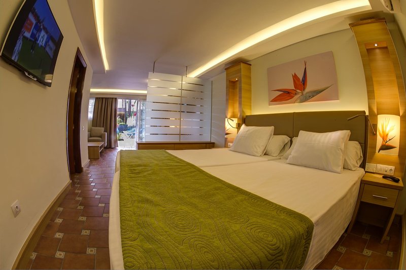 Ausstattung: Das bekannte Adults-only-Hotel (buchbar ab 16 Jahren) mit 245 Zimmern, verteilt auf 7 Etagen, verfügt über eine Empfangshalle mit Rezeption, Lifte, Bar-Salon mit Terrasse, Bibliothek, Internetecke und Wi-Fi gratis in der gesamten Anlage und ein Restaurant mit großer Terrasse. Gepflegter, weitläufiger Garten mit üppigem Palmenbestand und 2 Swimmingpools (einer im Winter beheizbar).