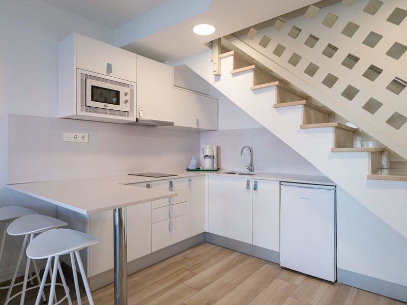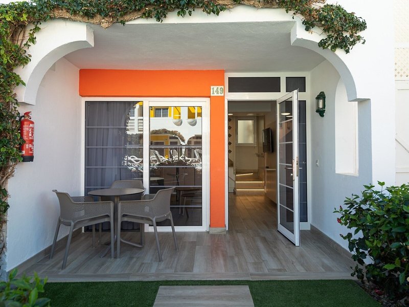 • Bungalow Plus - 2 bedrooms (BUX5), Bungalow, Gartenseite, Gartenblick, Blick auf vistas privilegiadas, ca. 63 m², letzte Komplettrenovierung 2020, Gesamtanzahl der Räume in diesem Zimmertyp: 3, Aufteilung wie folgt: kombiniertes Wohn-/Schlafzimmer, Maisonette, 2 Schlafzimmer, 2 Einzelbetten (90x200cm), 1 Schlafsofa (120x190cm), Babybett: ohne Gebühr, Anfrage notwendig, Fußboden: Fliesenboden, Safe: gegen Gebühr, Deckenventilator, Sitzecke, Sofa, Kochnische, Kühlschrank: ohne Gebühr, Kochplatte, Mikrowelle, Kaffeemaschine, Kaffee-/Teezubereiter, Wasserkocher, Toaster, Esstisch, Telefon, Internet: WLAN/WiFi: ohne Gebühr, Fernseher: Flatscreen, im Wohnbereich, im Schlafzimmer, Sat-TV, Reinigungsservice: mehrmals pro Woche, ohne Gebühr, Dusche, WC, Föhn, Kosmetikspiegel, Balkon oder Terrasse, Terrasse: mit Sitzgelegenheit