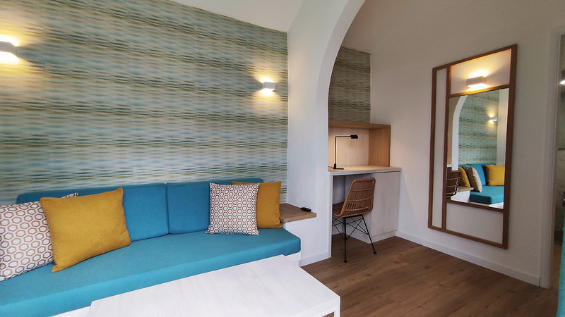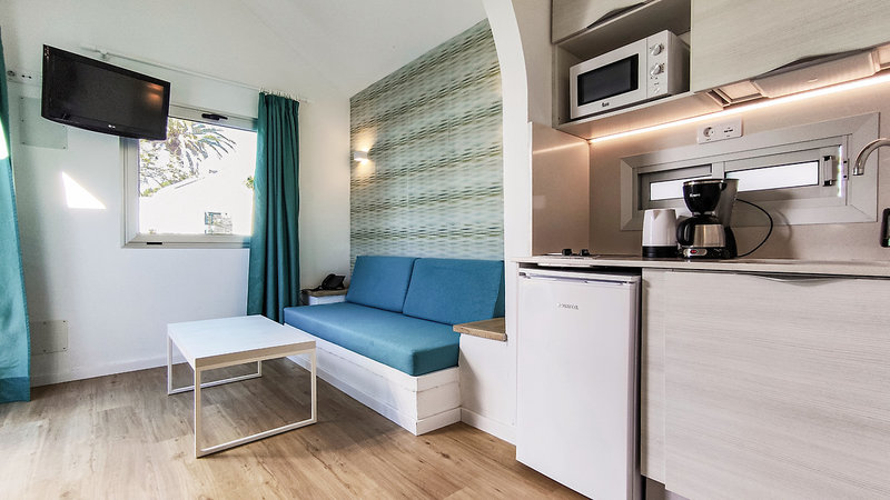 • 26-30 qm, separates Schlafzimmer, separater Wohnraum, Sitzecke, Twinbett, Sofabett, Dusche, WC, Haartrockner, Fliesen, Klimaanlage, Mini-Kühlschrank, Safe, TV (Sat-TV), Kochnische, Wasserkocher, Kaffeemaschine, Terrasse (möbliert), Bettwäschewechsel, Handtuchwechsel