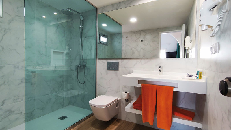 • 26-30 qm, separates Schlafzimmer, separater Wohnraum, Sitzecke, Twinbett, Sofabett, Dusche, WC, Haartrockner, Fliesen, Klimaanlage, Mini-Kühlschrank, Safe, TV (Sat-TV), Wasserkocher, Terrasse (möbliert), Bettwäschewechsel, Handtuchwechsel, Bungalow-Typ BB3 ist inklusive Halbpension
