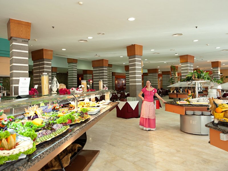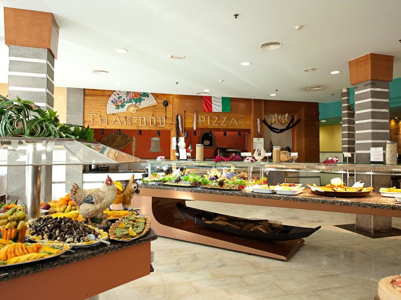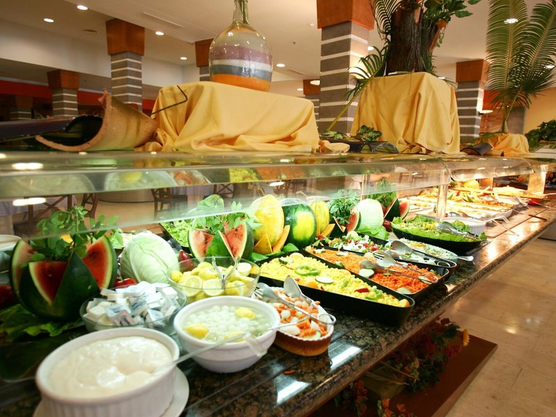 - Hauptrestaurant „Buffet Restaurant“: Küche: asiatisch, mediterran, orientalisch, regional, spanisch, glutenfreie Gerichte: ohne Gebühr, bei All Inclusive inklusive, Anfrage & Reservierung notwendig, Kinderbuffet, lactosefreie Gerichte: ohne Gebühr, bei All Inclusive inklusive, Anfrage & Reservierung notwendig, vegetarische Gerichte, Buffet, Showcooking, Anfrage & Reservierung nicht notwendig, ohne Gebühr, bei All Inclusive inklusive, täglich 08:00 Uhr - 10:30 Uhr, 13:00 Uhr - 15:00 Uhr und 18:30 Uhr - 21:00 Uhr, klimatisierbar, mit Terrasse, Kinderhochstuhl, angemessene Kleidung erwünscht