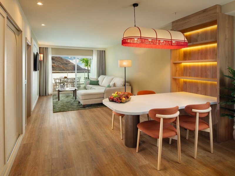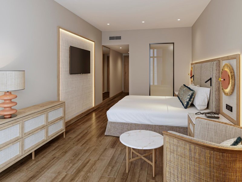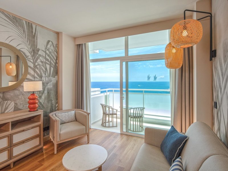 - Suite ESENCIA (SUM3), Suite, Meerblick, ca. 70 m², letzte Komplettrenovierung 2024, Gesamtanzahl der Räume in diesem Zimmertyp: 2, Aufteilung wie folgt: kombiniertes Wohn-/Schlafzimmer, 1 Schlafzimmer, 1 Schlafsofa, Babybett: ohne Gebühr, Anfrage nicht notwendig, Klimaanlage: ohne Gebühr, individuell regelbar, Fußboden: Fliesenboden, Safe: ohne Gebühr, Schreibtisch, Kaffee-/Teezubereiter, Telefon, Internet: WLAN/WiFi: ohne Gebühr, Fernseher: Flatscreen, Sat-TV, Reinigungsservice: täglich, ohne Gebühr, Dusche, Badewanne, WC, Bademantel, Slipper, Föhn, Kosmetikspiegel, Balkon: mit Sitzgelegenheit