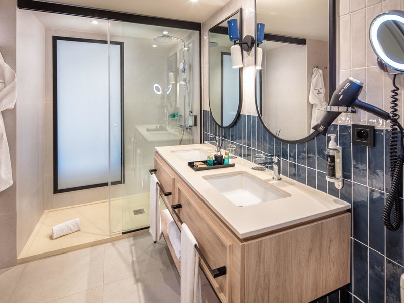- Junior Suite ESENCIA (JSM3), Juniorsuite, Meerblick, ca. 37 m², letzte Komplettrenovierung 2024, Gesamtanzahl der Räume in diesem Zimmertyp: 1, Aufteilung wie folgt: kombiniertes Wohn-/Schlafzimmer, 1 Schlafsofa, Babybett: ohne Gebühr, Anfrage nicht notwendig, Klimaanlage: ohne Gebühr, individuell regelbar, Fußboden: Fliesenboden, Safe: ohne Gebühr, Schreibtisch, Kaffee-/Teezubereiter, Telefon, Internet: WLAN/WiFi: ohne Gebühr, Fernseher: Flatscreen, Sat-TV, Reinigungsservice: täglich, ohne Gebühr, Dusche, WC, Bademantel, Slipper, Föhn, Kosmetikspiegel, Balkon: mit Sitzgelegenheit