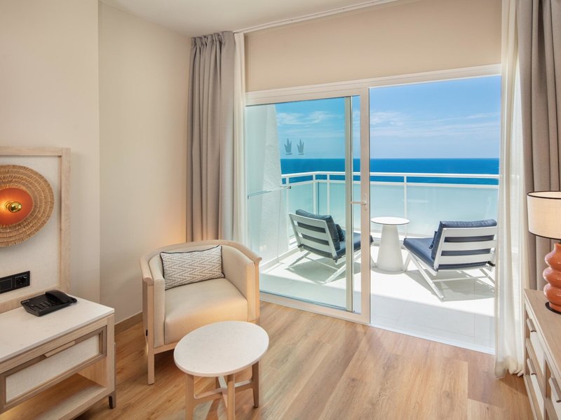 - Standard Esencia (DZM6), Doppelzimmer, Meerblick, ca. 30 - 35 m², letzte Komplettrenovierung 2024, Gesamtanzahl der Räume in diesem Zimmertyp: 1, Aufteilung wie folgt: kombiniertes Wohn-/Schlafzimmer, 1 Doppelbett, Babybett: ohne Gebühr, Anfrage nicht notwendig, Klimaanlage: ohne Gebühr, individuell regelbar, Fußboden: Fliesenboden, Safe: ohne Gebühr, Schreibtisch, Kaffee-/Teezubereiter, Telefon, Internet: WLAN/WiFi: ohne Gebühr, Fernseher: Flatscreen, Sat-TV, Reinigungsservice: täglich, ohne Gebühr, Dusche, WC, Bademantel, Slipper, Föhn, Kosmetikspiegel, Balkon: mit Sitzgelegenheit