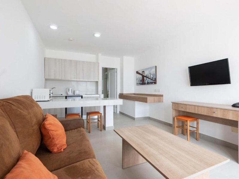 So wohnen Sie: Die Zimmer sind mit einem Wohnzimmer, einer Küche und einem Badezimmer ausgestattet, außerdem sorgen eine Klimaanlage, eine Heizung und ein Ventilator für gutes Raumklima. In den meisten Zimmern zählt ein Balkon zum Standard. Die Zimmer verfügen über ein Doppelbett oder ein Sofabett. Es sind separate Schlafzimmer vorhanden. Zustellbetten können angefordert werden. Außerdem sind ein Safe und eine Minibar verfügbar. Die Kochnische ist mit einem Kühlschrank, einem Herd, einer Mikrowelle und einer Tee-/Kaffeemaschine gut für Selbstversorger ausgestattet. Eine Hosenpresse ist für den zusätzlichen Komfort der Gäste verfügbar. Darüber hinaus sind ein Telefon mit Direktwahl, ein TV-Gerät mit Satelliten-/Kabelempfang und WiFi (gegen Gebühr) vorhanden. Im Badezimmer, ausgestattet mit einer Dusche und einer Badewanne, gibt es ein Telefon. Es sind auch rollstuhlgerechte Zimmer mit barrierefreiem Bad verfügbar. Die Unterbringung bietet Familien-, Nichtraucher- und Raucherzimmer.