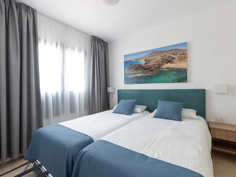 Lage & Umgebung Der Apartmentkomplex liegt auf einer Anhöhe zentral in der touristischen Ortschaft Puerto del Carmen, nur etwa 800 m vom feinen Sandstrand Playa Blanca entfernt. Das Zentrum ist ca. 1 km entfernt. In etwa 600 m befinden sich Geschäftszonen mit Läden, Boutiquen, Bars und Restaurants. Öffentliche Verkehrsmittel sind in ca. 150 m erreichbar.