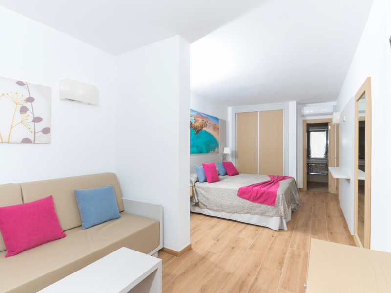 - Dvojlôžková jednolôžková izba s dieťaťom typ 1 (DSX1), dvojlôžková izba, nefajčiarska izba, strana do záhrady, výhľad do záhrady, cca 28 - 30 m², posledná kompletná rekonštrukcia 2018, celkový počet izieb v tomto type izby: 1, dispozičné riešenie nasleduje: kombinovaná obývačka/spálňa, 2 samostatné postele ( 100x200cm), 2 rozkladacie pohovky (90x180cm), klimatizácia: zadarmo, individuálne nastaviteľná, studená, teplá, podlaha: dlažba, trezor: cca 3,50 EUR, pohovka, chladnička: zadarmo, kávovar/čajník, rýchlovarná kanvica, telefón, internet: WLAN/WiFi: zadarmo, TV: plochá obrazovka, satelitná TV, upratovanie: zadarmo, sprcha, WC, terasa s posedením