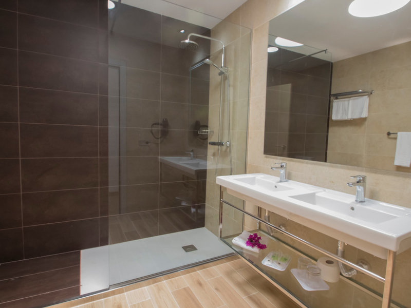 - Suita (SUX1), bungalov, nefajčiarska izba, strana do záhrady, výhľad do záhrady, cca 48 - 52 m², posledná kompletná rekonštrukcia 2018, celkový počet izieb v tomto type izby: 2, rozloženie: kombinovaná obývačka/spálňa, 1 spálňa, 2 samostatné postele (100x200cm), 1 rozkladacia pohovka (140x180cm), detská postieľka: zadarmo, klimatizácia: zadarmo, individuálne nastaviteľná, studená, teplá, podlaha: dlažba, trezor: cca 3,50 EUR, sedačka, chladnička: zadarmo, rýchlovarná kanvica, telefón, Internet: WLAN / WiFi: zadarmo, TV: plochá obrazovka, v obývacej časti, v spálni, satelitná TV, upratovanie: zadarmo, sprcha, WC, 2 kúpeľne, sušič vlasov, kozmetické zrkadlo, terasa: s posedením