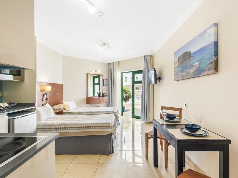 So wohnen Sie: Für angenehmes Raumklima in den Zimmern sorgt ein Ventilator. Die Gäste können den Poolblick von Balkon oder Terrasse genießen. Kinderbetten für die jüngsten Gäste sind ebenso vorhanden. Wertsachen können in einem Safe sicher aufbewahrt werden. Ein Kühlschrank, ein Herd, eine Mikrowelle und eine Tee-/Kaffeemaschine zählen ebenfalls zur Standardeinrichtung. Ein Bügelset ist für den zusätzlichen Komfort der Gäste verfügbar. Die Ausstattung wird von einem Telefon, Sat-TV und WiFi (ohne Gebühr) abgerundet. Im Badezimmer – ausgestattet mit einer Dusche – gibt es einen Haartrockner. Für Eltern mit Kindern stehen Familienzimmer zur Verfügung.
