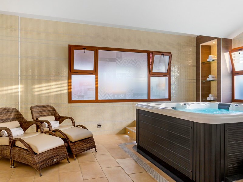 - Bazény: Detský bazén, Vyhrievaný vonkajší bazén, Vnútorný bazén, Vonkajší bazén, Slnečníky, Ležadlá pri bazéne