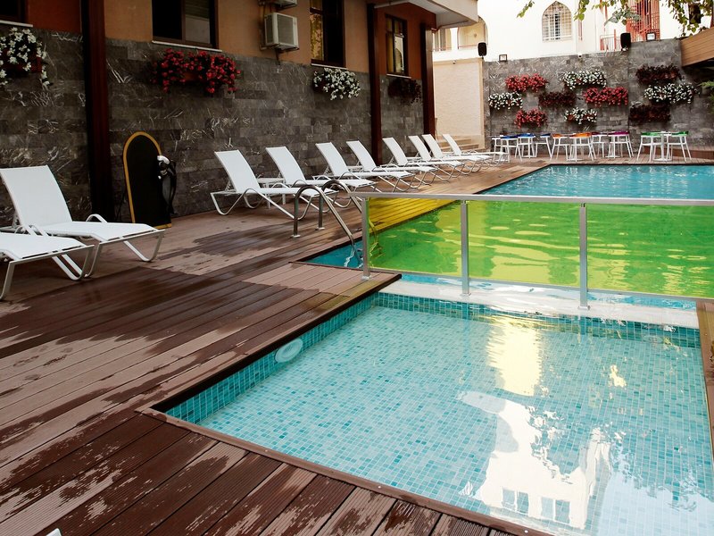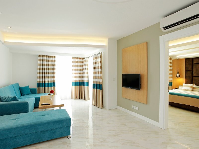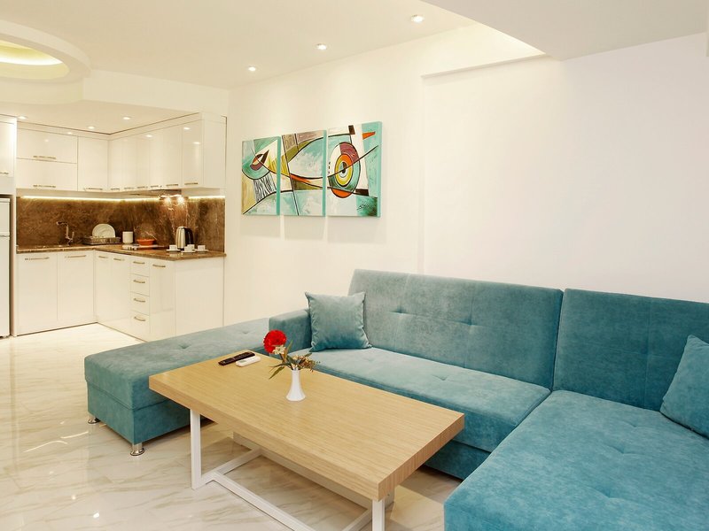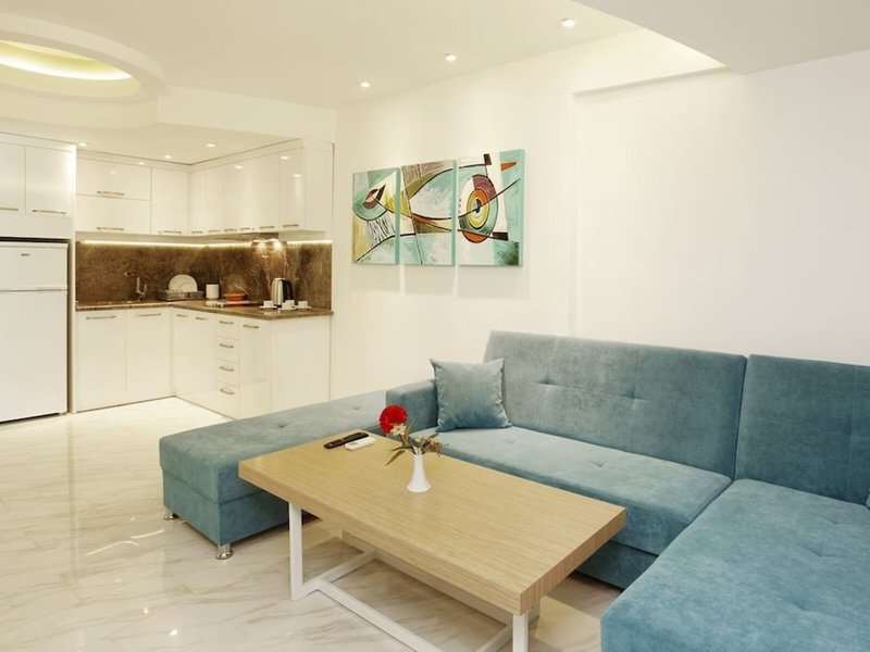Poloha a okolie Tento apartmánový hotel sa nachádza cca 100 m od piesočnatej pláže a do centra Alanye je to cca 700 m. Najbližšie letisko Gazipasa (GZP) je vzdialené približne 45 km a letisko Antalya (AYT) približne 125 km.