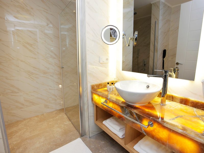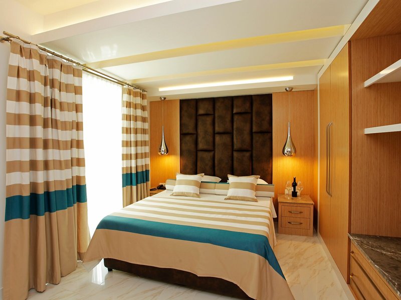 Vaše ubytovanie: Klimatizácia a kúrenie zabezpečujú príjemnú vnútornú klímu. Väčšina izieb má štandardne balkón. Izby sú vybavené manželskou posteľou. K dispozícii je aj detská postieľka a prístelka. K dispozícii je aj trezor a minibar. K dispozícii je plne vybavená kuchynka s chladničkou, sporákom, zariadením na prípravu čaju/kávy a rúrou. Telefón, TV s plochou obrazovkou a Wi-Fi zabezpečujú najlepší komfort počas dovolenky. Hostia nájdu v izbách papuče. Kúpeľňa s vaňou je vybavená sušičom vlasov a telefónom. Hotel ponúka nefajčiarske izby.