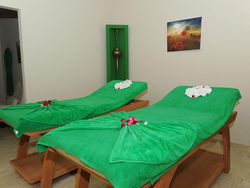 Sport & Fitness: Neben Innen- und Außenpools gibt es einen Kinderbadebereich. Zur Erholung laden Liegen unter Sonnenschirmen auf der Terrasse ein. Wohlige Entspannung verspricht der Whirlpool im Badebereich. Wem der Sinn nach Bewegung steht, werden Radfahren/Mountainbiking, Tennis und Golfen angeboten. Die Unterbringung bietet Sportfreunden auch viele Aktivitäten im Innenbereich, nämlich ein Fitnessstudio, Darts, Yoga und Aerobic. Im Haus werden verschiedene Wellnessangebote wie Spa, Sauna, Dampfbad, Hammam, Massage-Anwendungen und Solarium offeriert. Ein Animationsprogramm, ein Miniclub, Live-Musik, eine Disco und ein Nachtclub sorgen für besten Freizeitspaß.