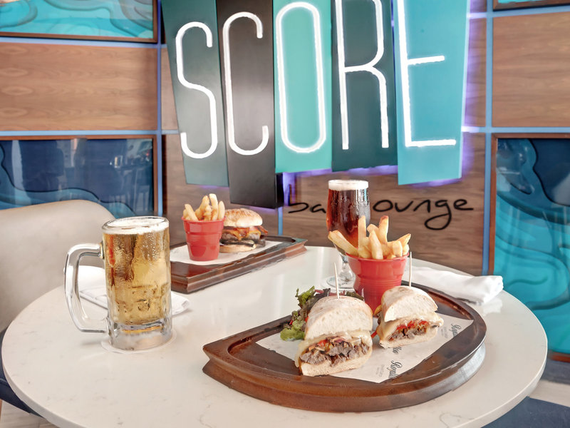 - Restaurant „Score Sports Bar & Lounge“: Küche: international, Grillgerichte, à la carte, Anfrage & Reservierung nicht notwendig, ohne Gebühr, täglich, mit Terrasse