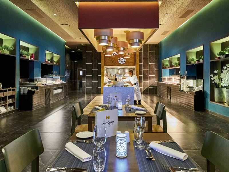 - Hauptrestaurant „Promenade“: Küche: international, vegetarische Gerichte, Buffet, Showcooking, ohne Gebühr, mit Terrasse, angemessene Kleidung erwünscht